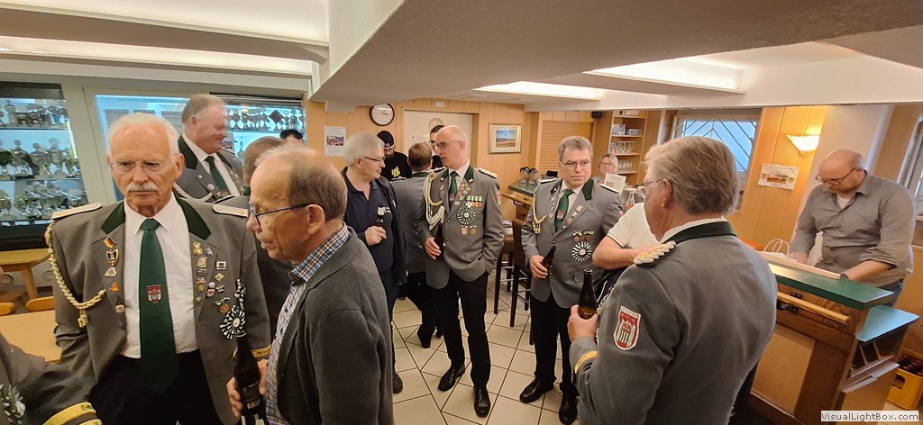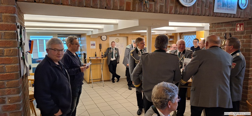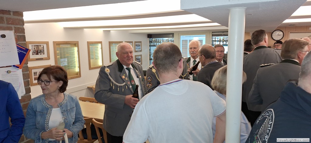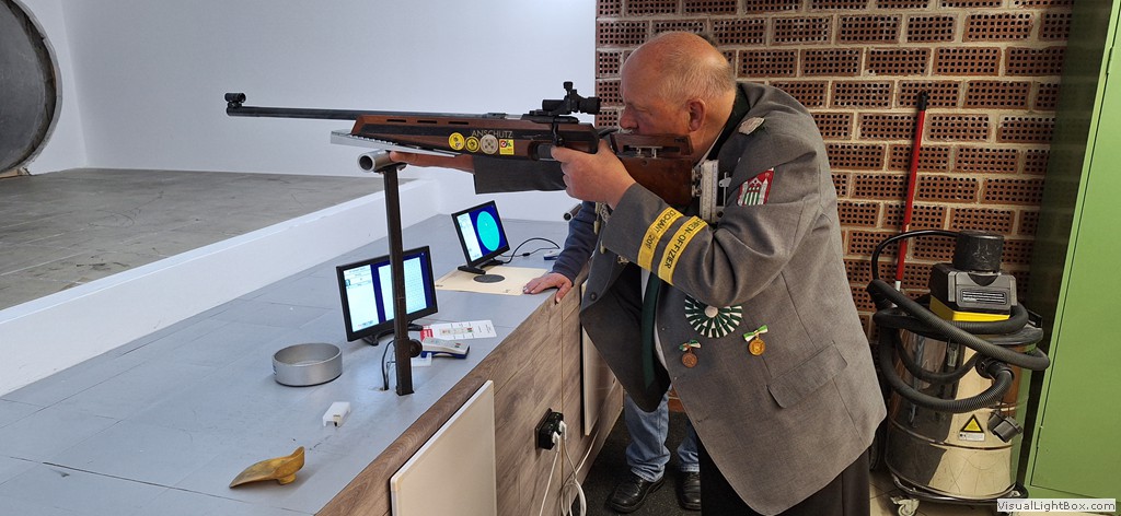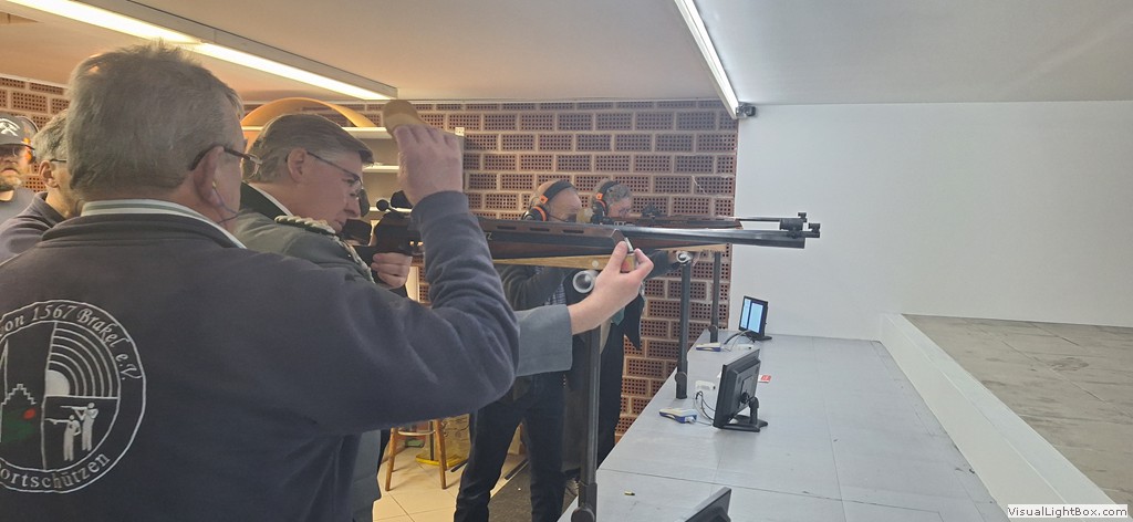 Auch der Vorstand des BSV war zahlreich erschienen. Der Vorsitzende der Sportschützen, Josef Bröker, bedankte sich bei allen Anwesenden für ihr kommen und schilderte in seiner Rede das Zustandekommen und die Ausführung des Umbaus. Auch ein Ausblick auf die Zukunft gab er. Hier sind noch einiege Aufgaben zu erledigen. Es fehlt z.B. noch die mediale Anbindung der KK-Elektronik an die Medientechnik im Gesellschaftsraum. Schließlich soll das Schießen erlebbar werden.
